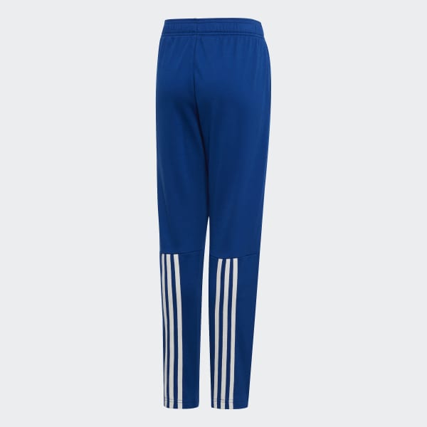 Detské modré Adidas tepláky na von alebo na šport. Vyrobené z mäkkej bavlny, ponúkajú slim fit strih pre lepšie prispôsobenie. Reflexné detaily a sieťované 3-pruhy v dolnej časti nohy dodávajú športový povrch. 100% bavlnená vložka a vrecká s bočnými švami.