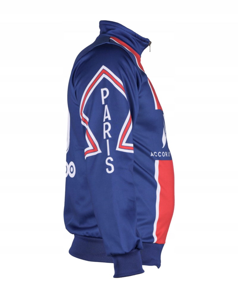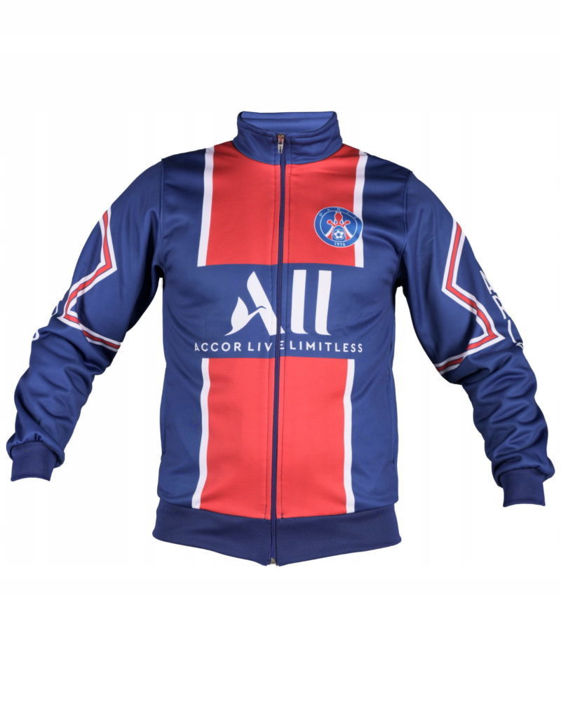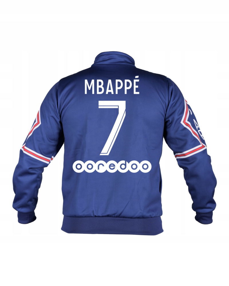 Detská mikina na štýl PSG Mbappe 2021/22 replika v modrej farbe určená pre malých fanúšikov Francúza. Štandardný strih. 100% polyester, kovový zips, zvnúra zateplená. Na zadnej strane charakteristické číslo 7 a meno Mbappe.