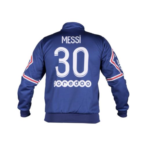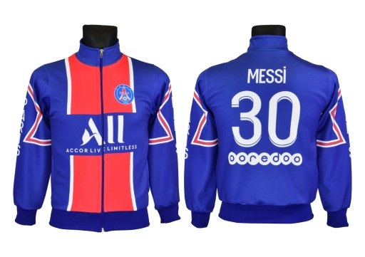 Detská mikina na štýl PSG Messi 2021/22 replika v modrej farbe určená pre malých fanúšikov Messiho. Štandardný strih. 100% polyester, kovový zips, zvnúra zateplená. Na zadnej strane charakteristické číslo 30 a meno Messi.