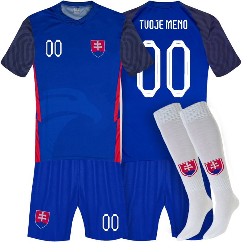 Detská Sada Slovensko 2023 modrej farby s možnosťou potlače mena a čísla. Iba v našom eshope. Potešte malých futbalistov slovenským kompletom sezóny 2022/2023.