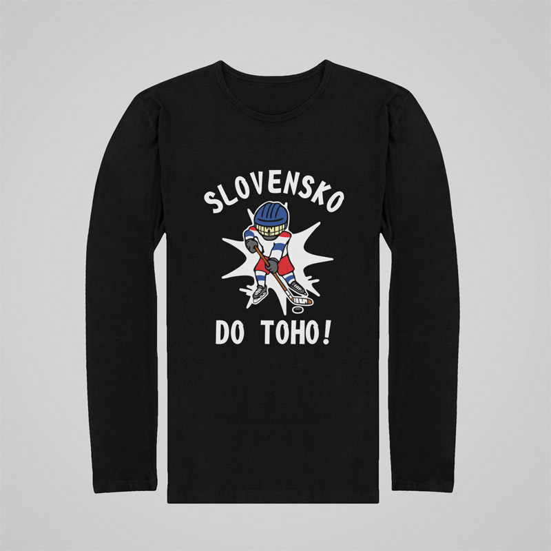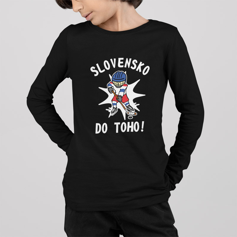 Detské hokejové tričko SLOVENSKO DO TOHO s dlhým rukávom pre všetkých hokejových fanúšikov. Fandite našim v škole, vonku alebo na tréningu – či už je Olympiáda alebo Majstrovstvá sveta. 100% bavlna. V čiernej, bielej, červenej a modrej farbe. Možnosť vlastnej potače mena a čísla. Kolekcia [PITČ].