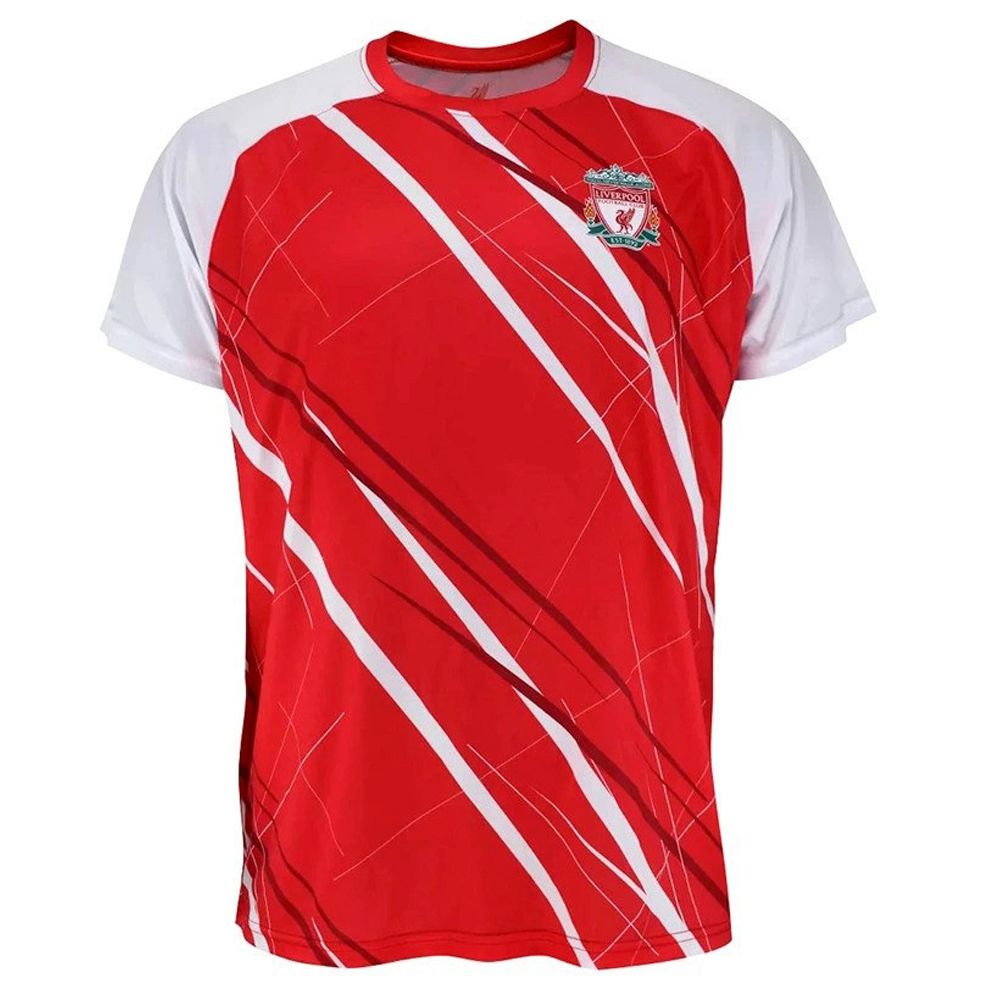 Detské tréningové tričko Liverpool s možnosťou potlače pre všetkých fanúšikov Liverpoolu.  Červená a biela farba. Tričko má na ľavej strane farebné logo klubu, biele rukávy. Na prednej a zadnej strane vedú priečne biele a tmavočervené pruhy. 100% polyester. Možnosť potlače vlastného mena a čísla. Oficiálny licencovaný produkt Liverpool FC.