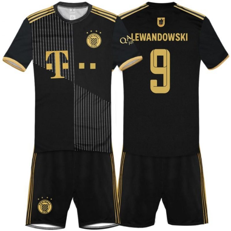 Detský dres Lewandowski 2021/22 replika určený pre malých fanúšikov Bayernu a Lewandowskeho. Štandardný strih. Sada obsahuje tričko a šortky. Na zadnej strane charakteristické číslo 9 a meno Lewandowski. Čierna farba. Tabuľku veľkostí nájdete v popise produktu nižšie.