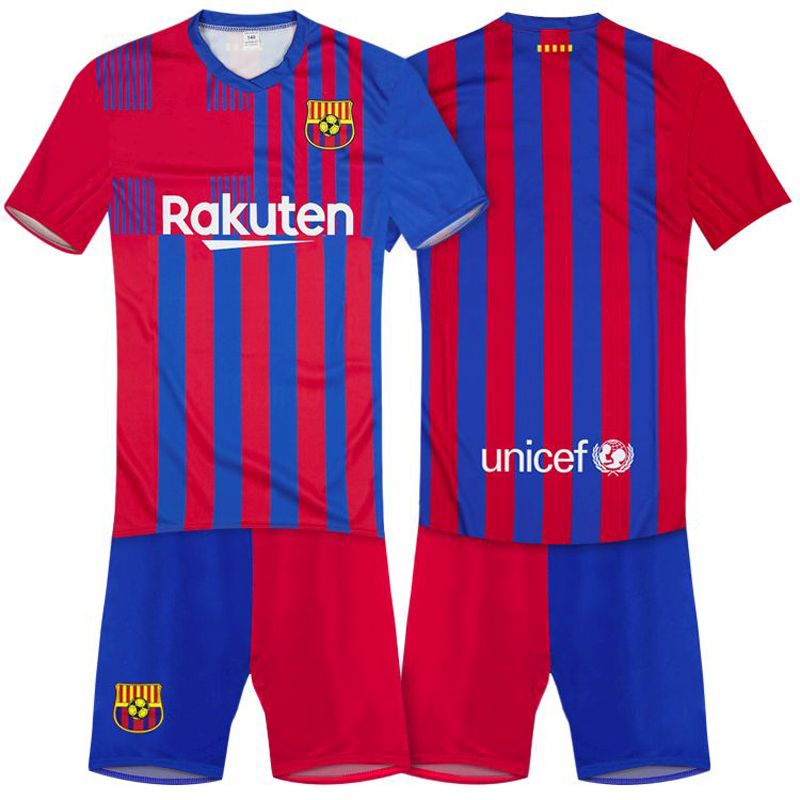 Detská sada dres a trenírky FC Barcelona sezóny 2021/22. Replika určená pre malých fanúšikov Kataláncov. Štandardný strih. Sada obsahuje tričko a šortky. Na zadnej strane možnosť potlačiť vlastné meno a číslo.