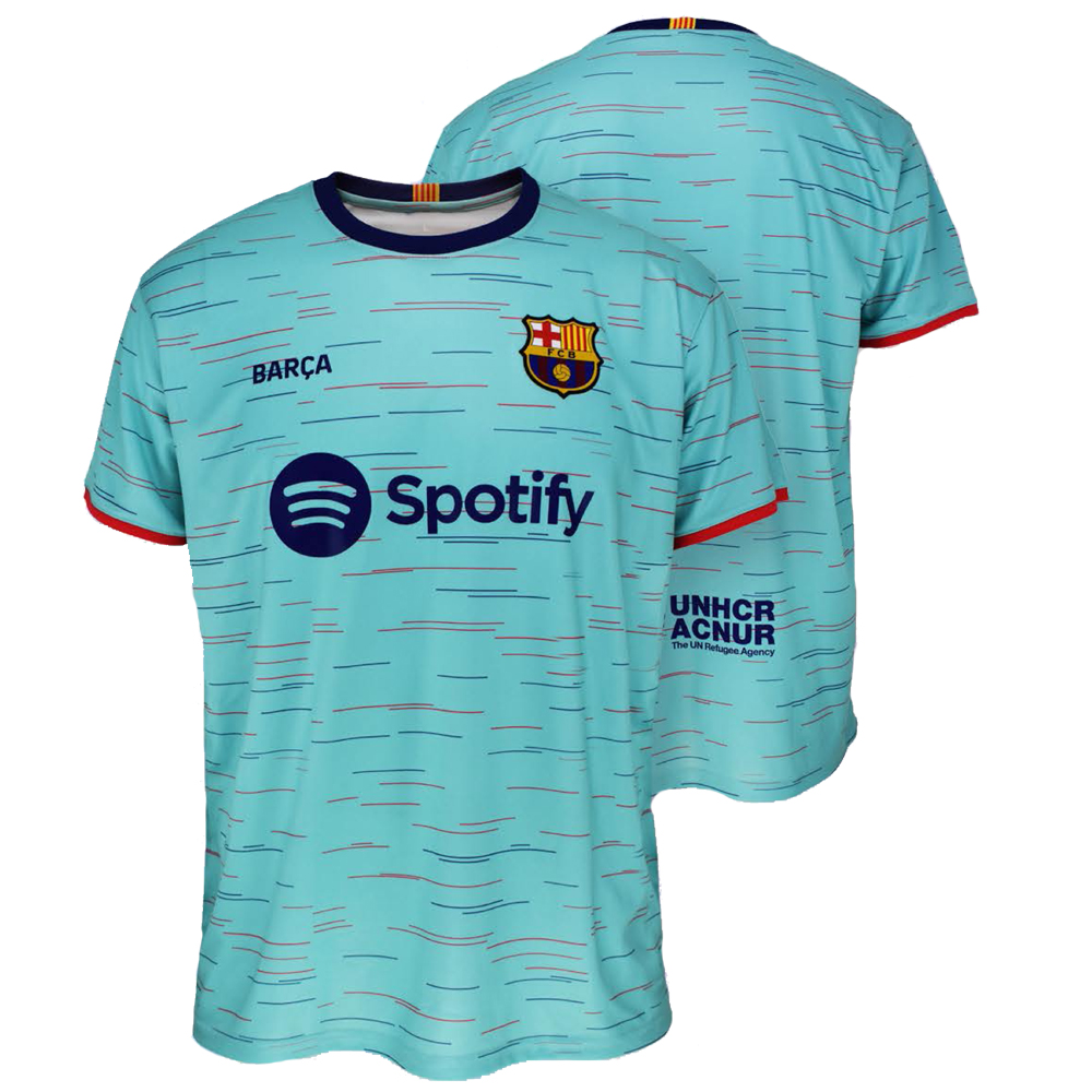 Detský dres FC Barcelona oficiálny produkt sezóny 2023/24 určený pre malých fanúšikov Kataláncov. Farba zelená – tretí dres. Štandardný strih. Sada obsahuje tričko a šortky. Možnosť potlače vlastného mena a čísla. Detský dres FC Barcelona oficiálny obsahuje znaky a logá klubu a je licencovaný FC Barcelonou.