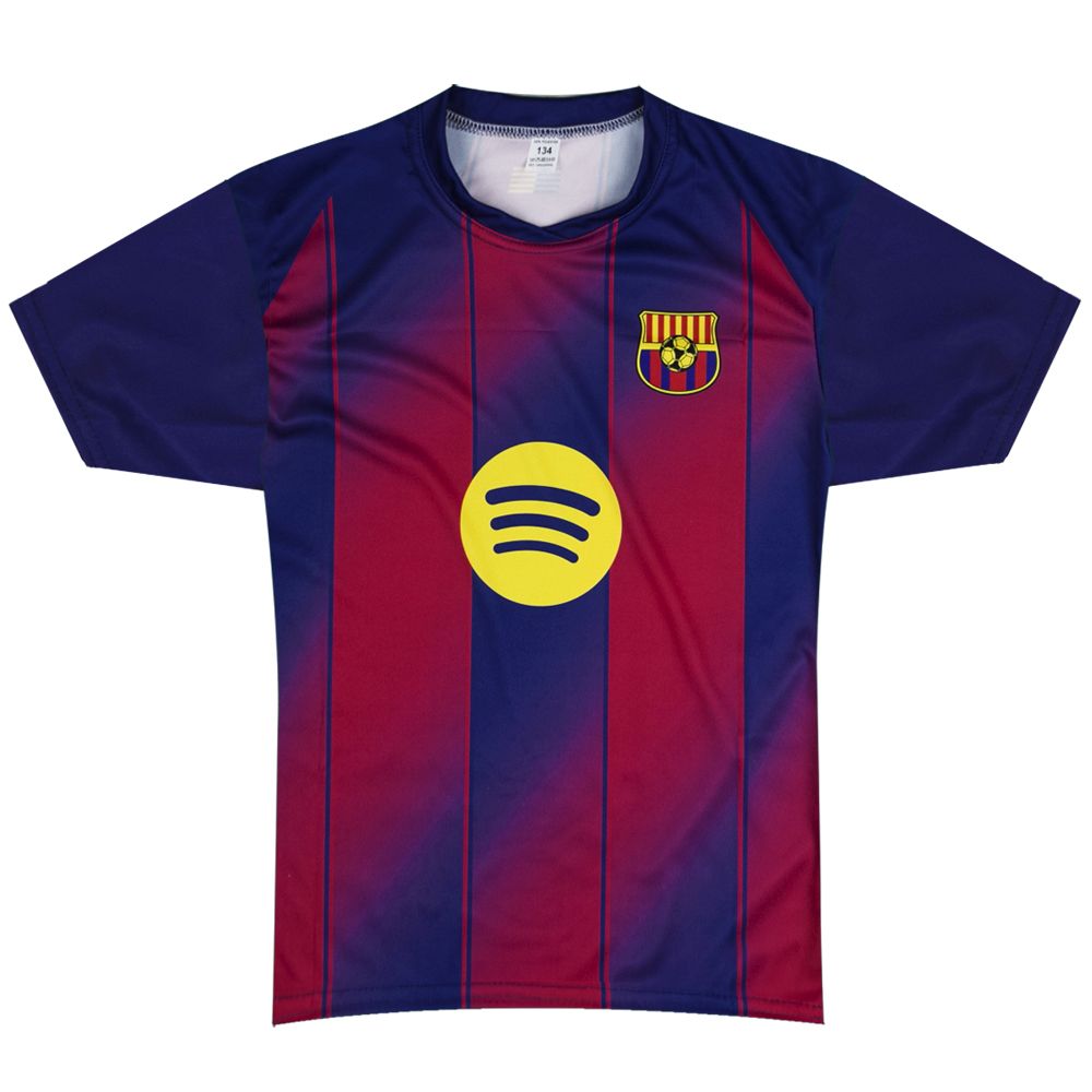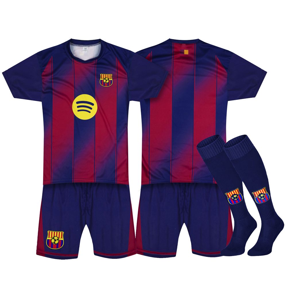Detský dres FC Barcelona 2025/26 (sada dres+trenírky). Replika určená pre malých fanúšikov Kataláncov. Štandardný strih. Sada obsahuje tričko a šortky. Na zadnej strane možnosť potlačiť vlastné meno a číslo.