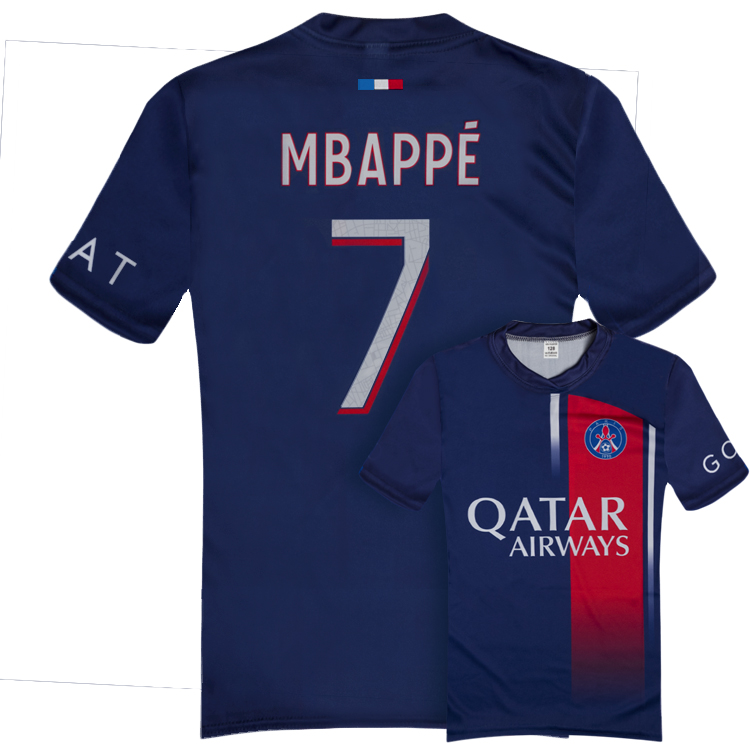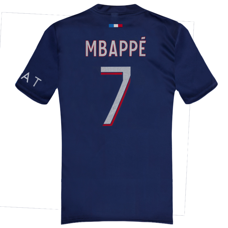 Detský dres na štýl PSG s menom Mbappe 2023/24 replika určený pre malých fanúšikov Mbappeho. Štandardný strih. Sada obsahuje tričko a šortky. Na zadnej strane charakteristické číslo 7 a meno Mbappe. Tabuľku veľkostí nájdete v popise produktu nižšie.