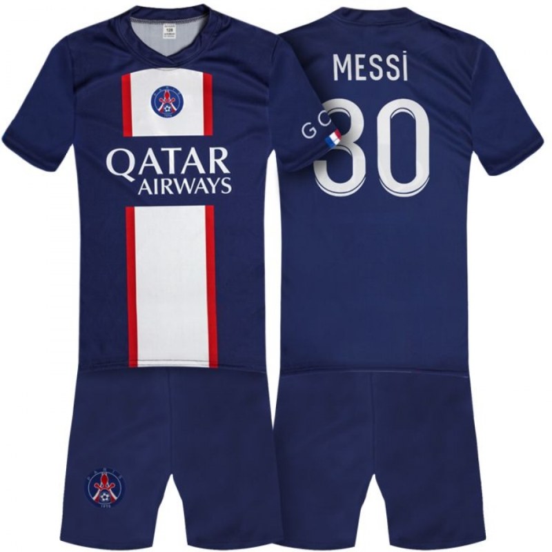 Detský dres na štýl PSG Messi 2022/23 replika v modrej farbe určený pre malých fanúšikov Messiho. Štandardný strih. Sada obsahuje tričko a šortky. Na zadnej strane charakteristické číslo 30 a meno Messi. Tabuľku veľkostí nájdete v popise produktu nižšie.