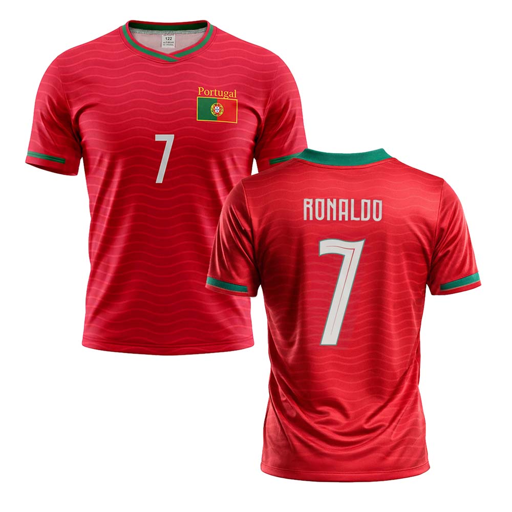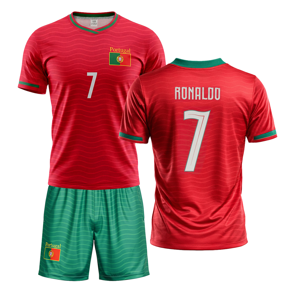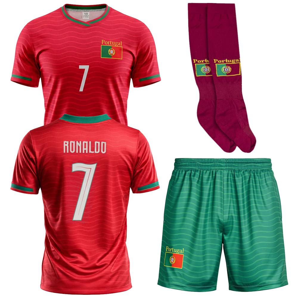 Detská sada dres a trenírky Ronaldo na štýl Portugalska na rok 2026 Ideálny darček pre každého malého fanúšika futbalovej legendy CR7. Táto replika obsahuje detské futbalové tričko a šortky v štandardnom strihu. Na zadnej strane nechýba ikonické meno Ronaldo a číslo 7. Dres Ronaldo pre deti je dostupný v rôznych veľkostiach. Tabuľku veľkostí nájdete v popise produktu nižšie.