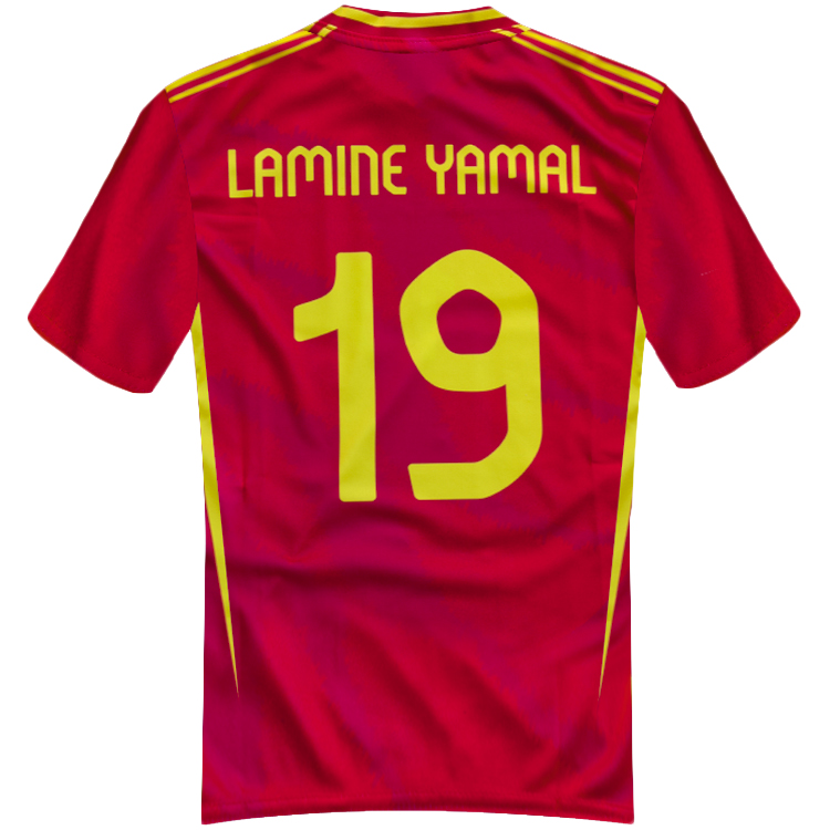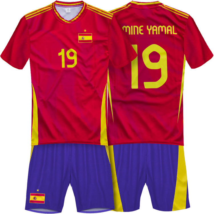Detský dres na štýl španielskej reprezentácie s menom Lamine Yamal replika určený pre malých fanúšikov Španiela. Štandardný strih. Sada obsahuje tričko a šortky. Na zadnej strane charakteristické číslo 19 a meno Yamal. Tabuľku veľkostí nájdete v popise produktu nižšie.