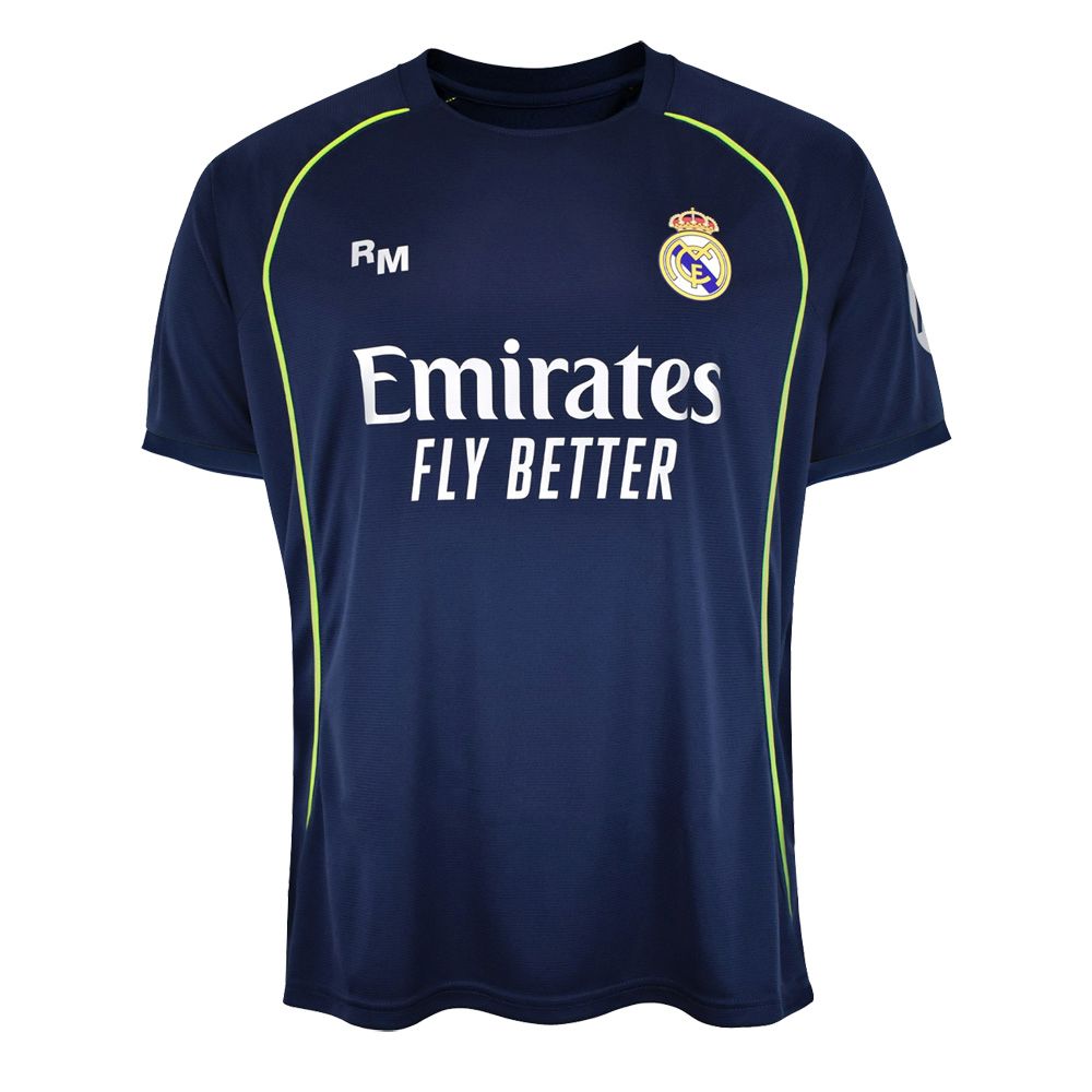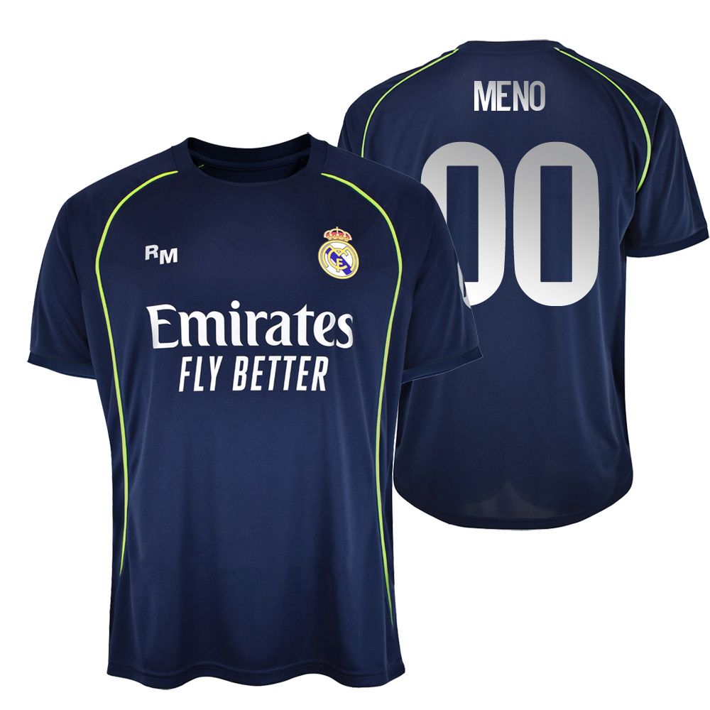 Dres Real Madrid 2025/26 s možnosťou potlače pre všetkých fanúšikov Realu Madrid. Logo klubu. Tmavomodrá klubová farba a strieborná potlač. 100% polyester. Možnosť potlače vlastného mena a čísla (od 5.1.2026), alebo hráčov ako Mbappé, Vinicius Junior, alebo Bellingham. Oficiálny licencovaný produkt Real Madrid.