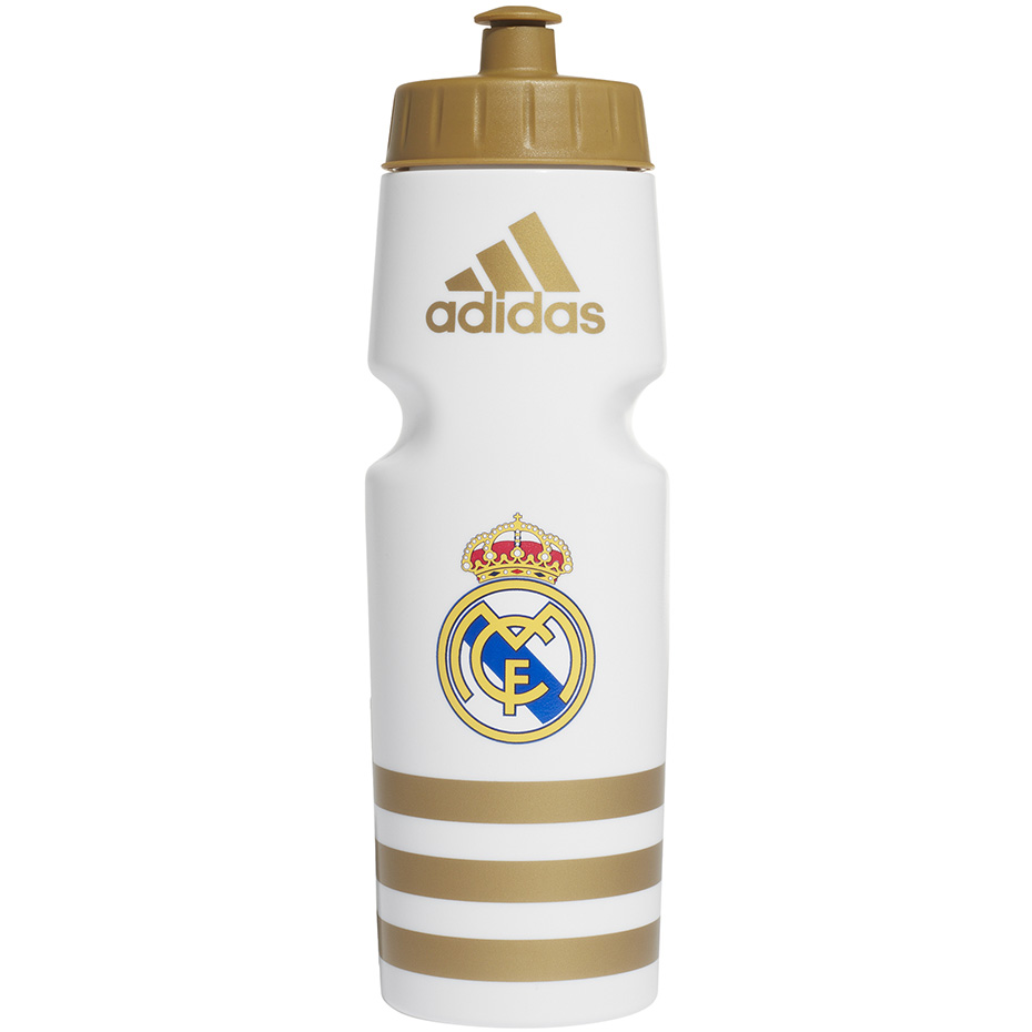 Fľaša Realu Madrid s logom klubu značky Adidas. Bezpečný materiál bez bisfenolu A (neinteraguje s kvapalinou). Logo Adidas, logo Realu Madrid, 3 pruhy. Uzáver s náustkom. Mierka na zadnej strane. Objem: 750 ml. Oficiálny produkt.