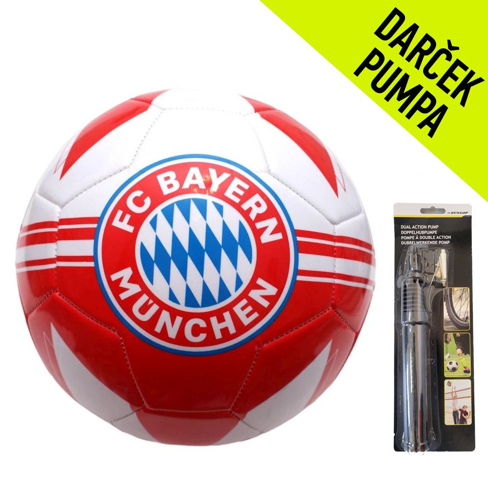Futbalová lopta je perfektným futbalovým darčekom pre všetkých fanúšikov FC Bayern. Logo klubu s červenými a bielymi prvkami. Ku každej lopte darček dvojčinná pumpa Dunlop. Oficiálny produkt.