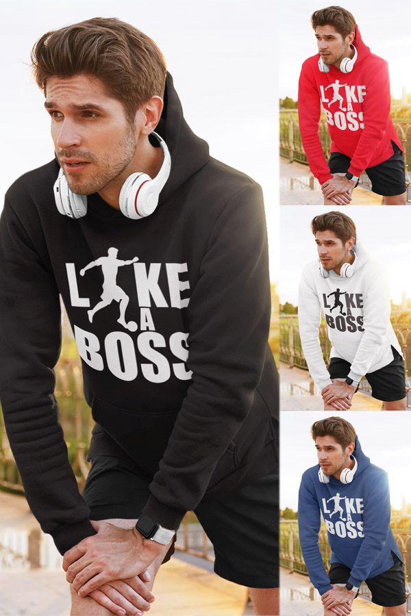 Futbalová mikina Like a Boss pre všetkých, ktorí milujú tento nádherný šport a hrajú ako pán. Rôzne veľkosti a štyri farby. Kolekcia [PITČ].