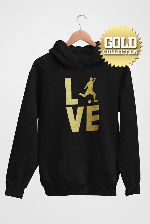 Futbalová mikina LOVE pre všetkých, ktorí milujú tento nádherný šport. Teraz aj v špeciálnej a exkluzívnej ZLATEJ edícii. Rôzne veľkosti, čierna farba. Kolekcia [PITČ].