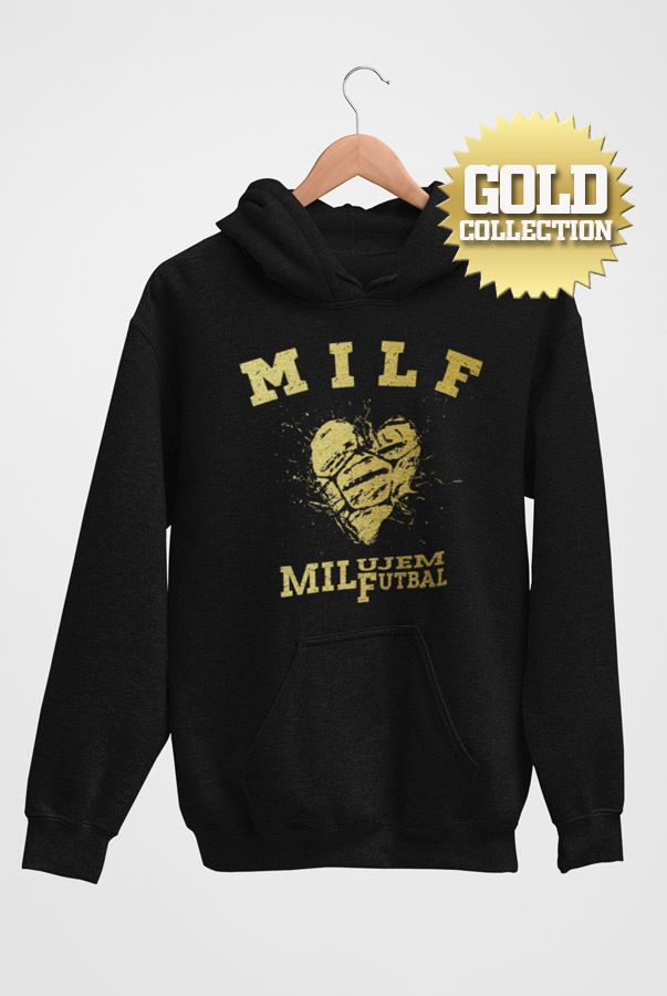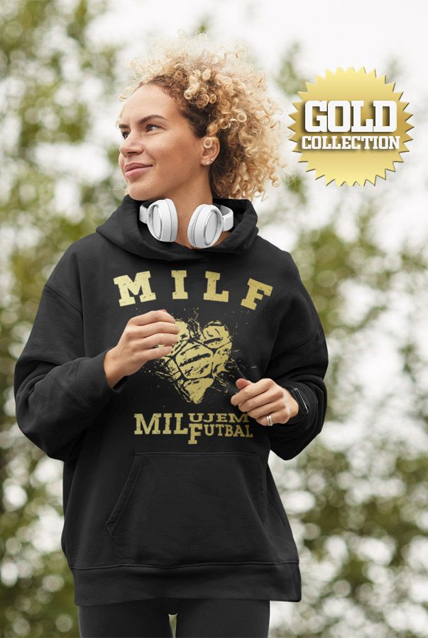 Futbalová mikina MILF Milujem futbal pre všetky ženy, ktoré milujú tento nádherný šport. Teraz aj v špeciálnej a exkluzívnej ZLATEJ edícii. 100% bavlna. Rôzne veľkosti, čierna farba. Kolekcia [PITČ].
