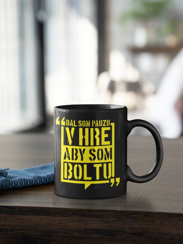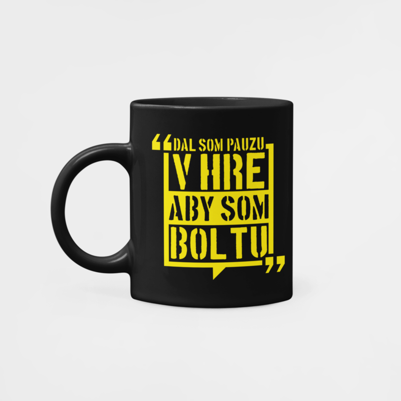 Jedinečný hrnček Dal som pauzu v hre pre vychutnávanie oddychových chvíľ, keď sa práve nedrví FIFA / nehrá alebo nepozerá futbal. V čiernej farbe so žltou grafikou.