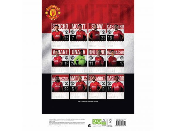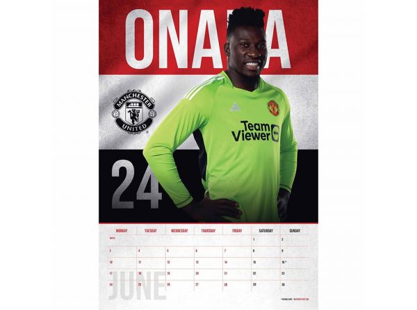 Kalendár Manchester United na rok 2024 pre všetkých fanúšikov Red Devils. Jedna titulná fotka a 12 ďalších. Fotky hráčov v drese, meno a klubový znak. Formát A3 (297 x 420 mm), väzba krúžková. Oficiálny produkt Manchestru United.