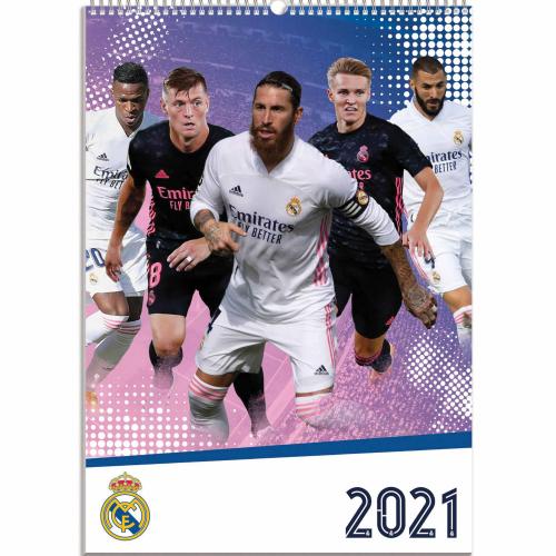 Kalendár Real Madrid na rok 2021 pre všetkých fanúšikov katalánskeho veľkoklubu. Jedna titulná fotka a 12 ďalších. Fotky hráčov v drese, meno a klubový znak. Formát A3 (297 x 420 mm), väzba krúžková. Oficiálny produkt Realu Madrid.