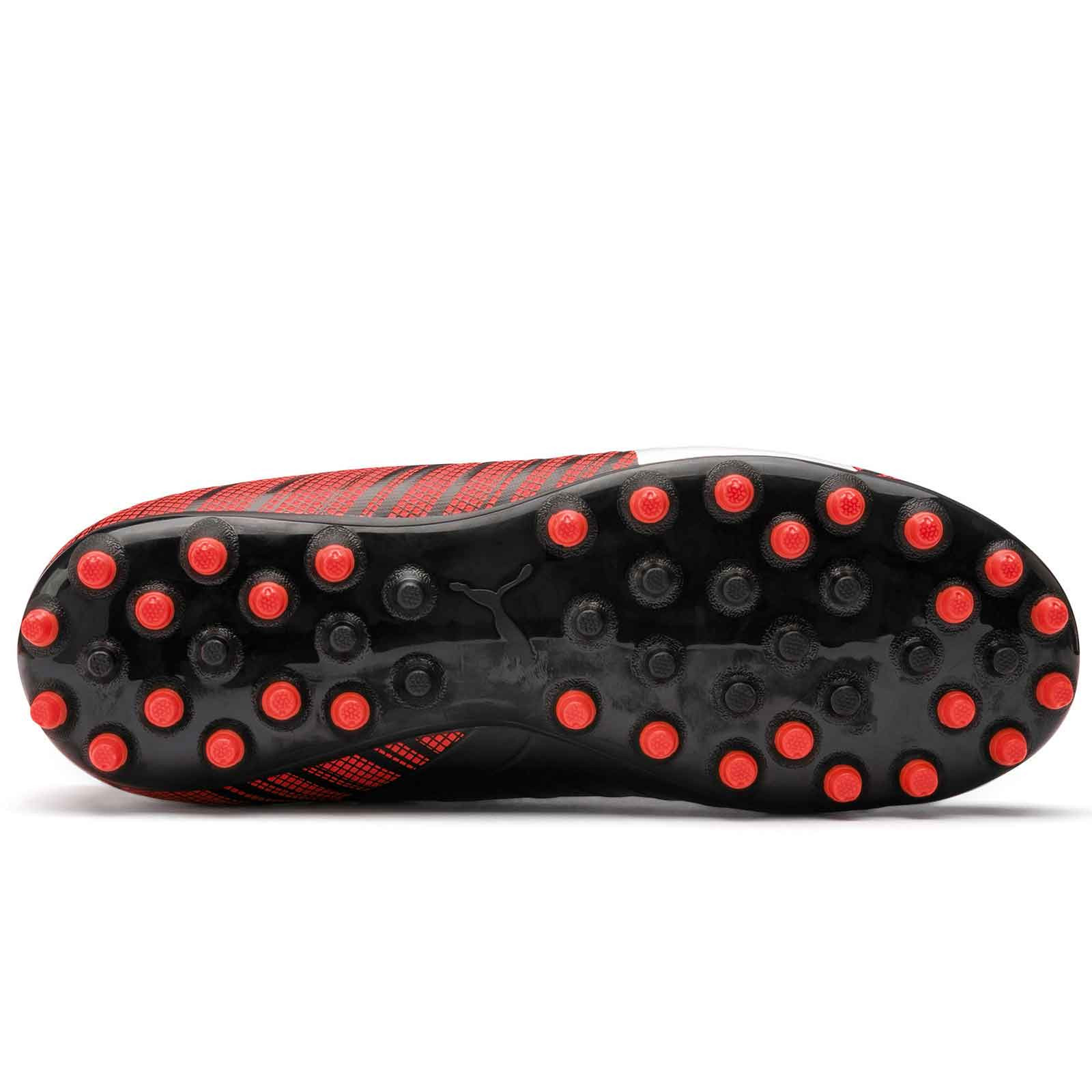 Detské kopačky Puma MG na prírodnú alebo umelú trávu – červené a čierne. Puma predstavuje novú generáciu One. Kolekcia Anthem Pack. Tabuľku veľkostí nájdete nižšie v popise.