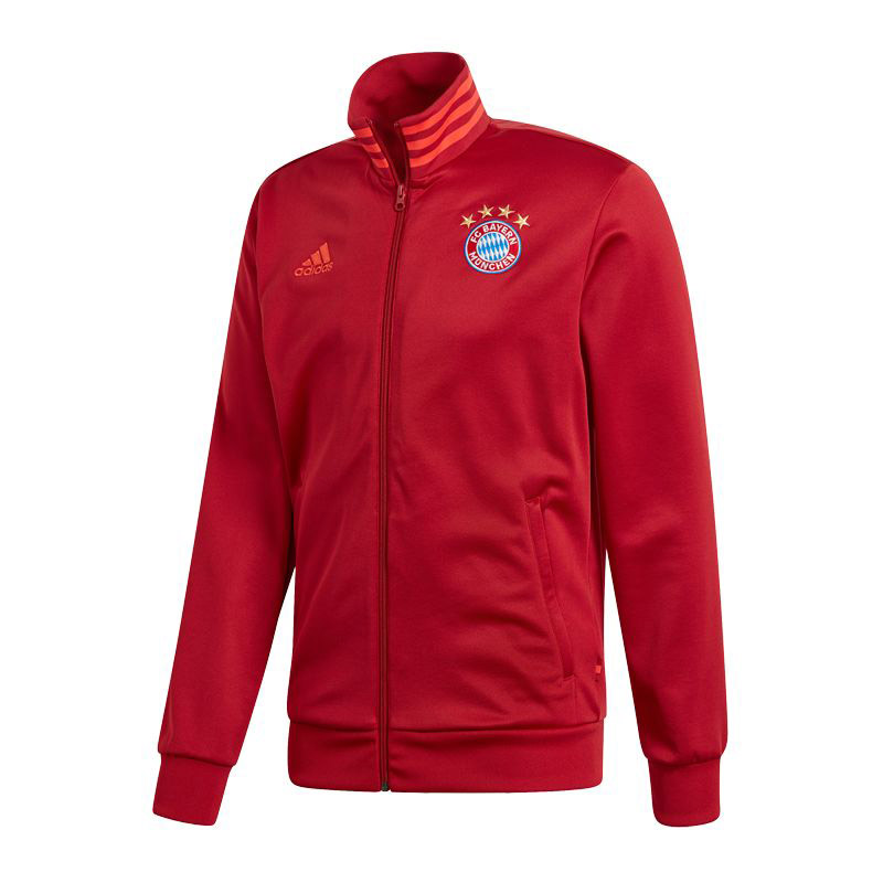 Mikina Adidas Monachium pre všetkých fanúšikov Bayernu. Červená so zipsom, stojacím golierom a bočnými vreckami. Logo klubu vpredu a tri pásy Adidas na golieri. 100% polyester. Oficiálny produkt.