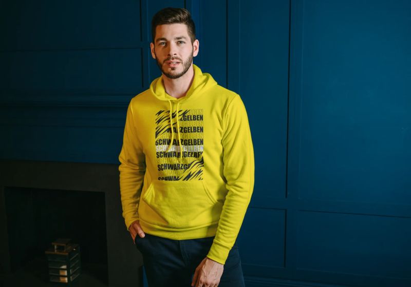 Mikina Dortmund Schwarzgelben pre všetkých fanúšikov žlto-čiernych z hlavného mesta futbalu v Nemecku. Štadión Signal Iduna Park je fantastický, atmosféra úžasná a tribúna Gelbe Wand magická. Kolekcia [PITČ].