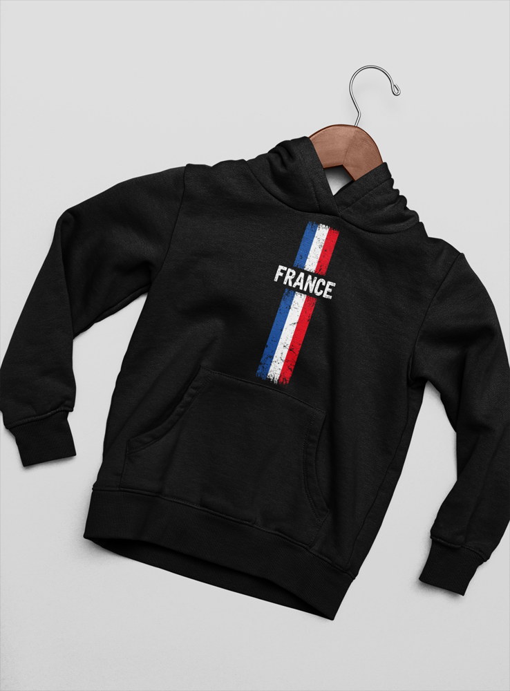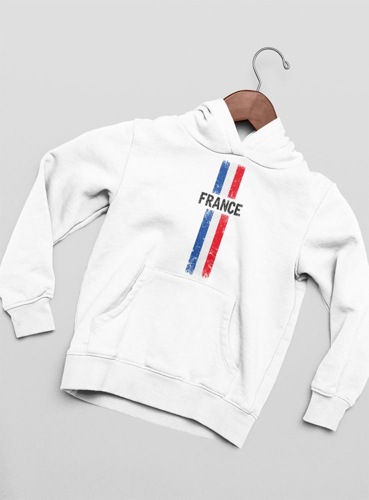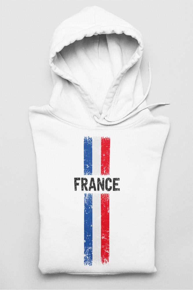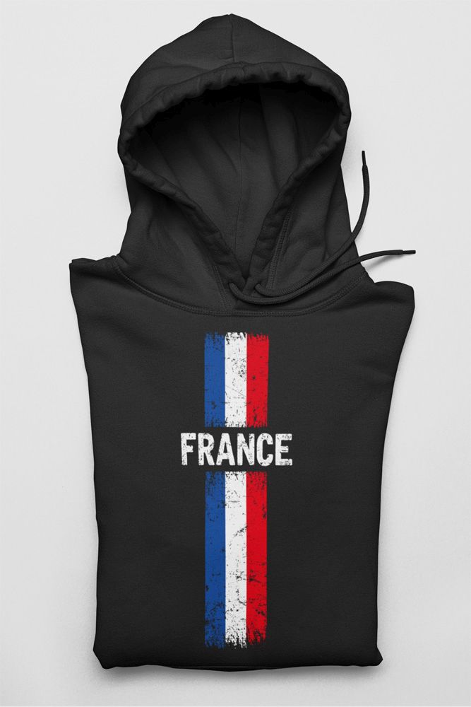 Mikina Francúzsko s vlajkou pre všetkých fanúšikov futbalu a Francúzska. 100% bavlna. V čiernej a bielej farbe. Pánske a chlapčenské veľkosti. Kolekcia [PITČ].
