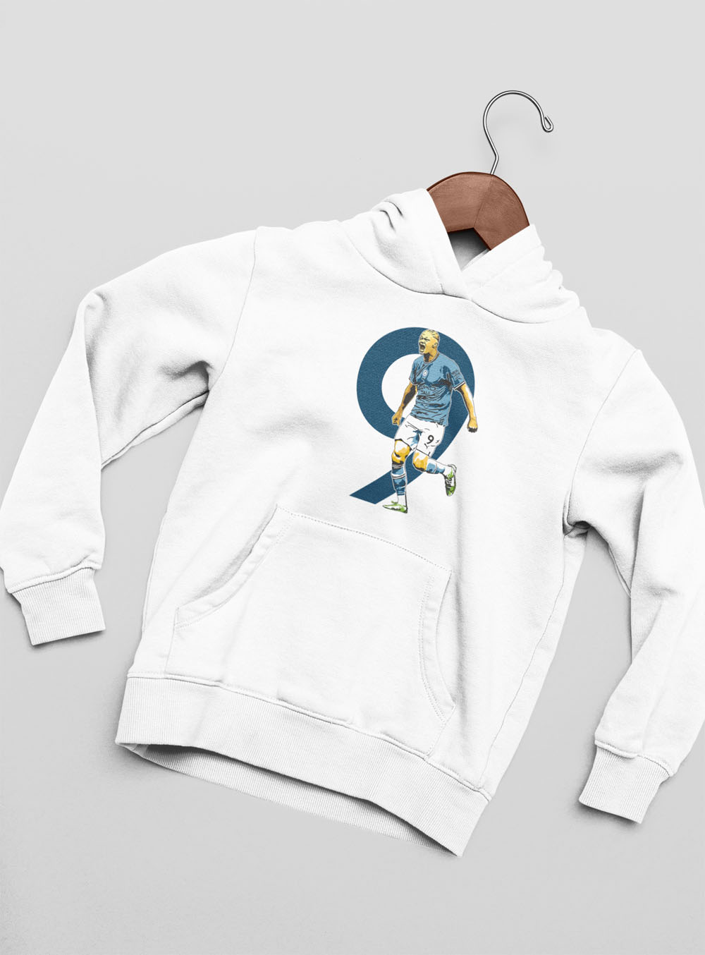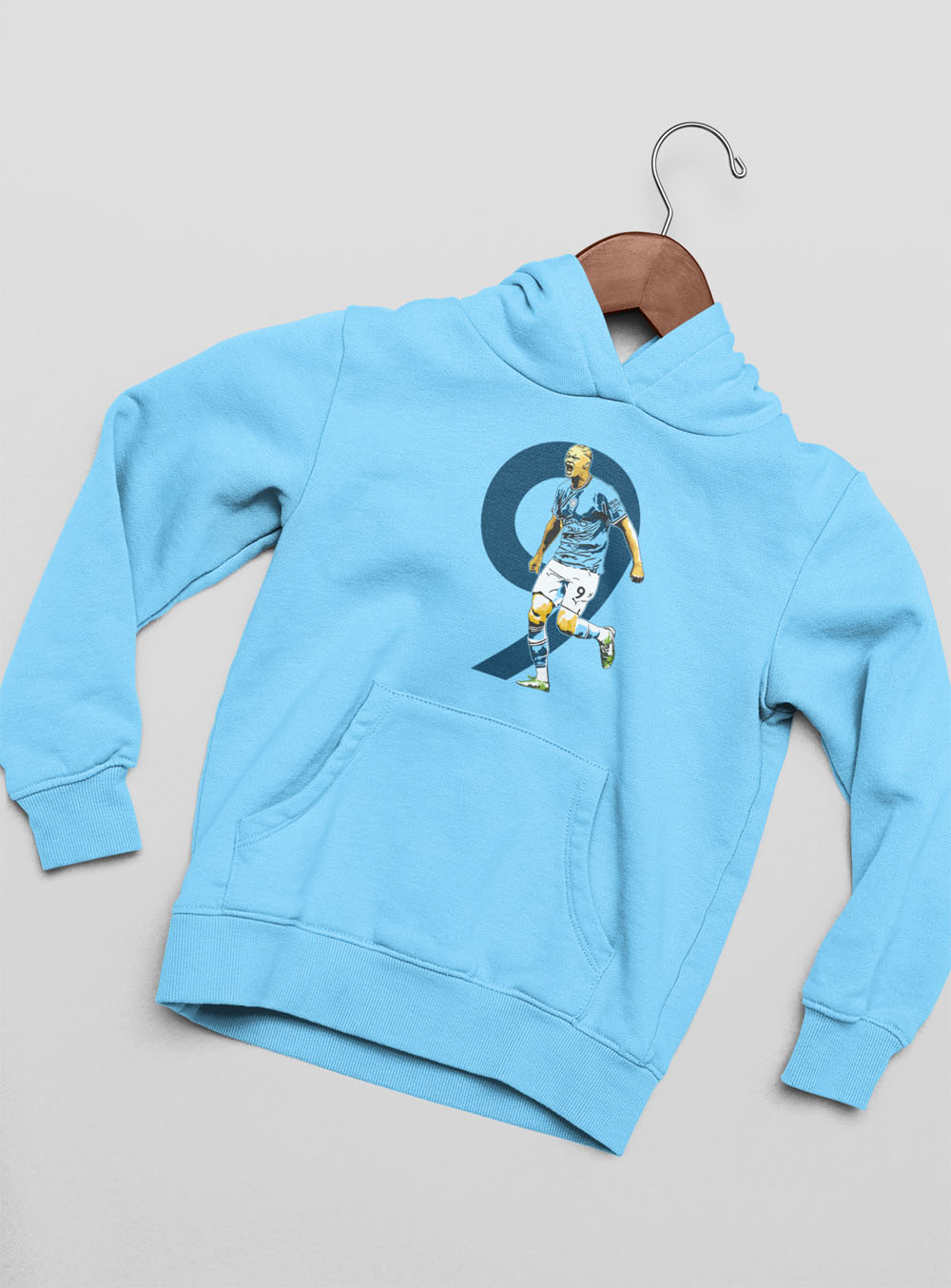 Mikina Haaland 9 s motívom ostrostrelca z Manchestru City pre všetkých fanúšikov Nóra a Cityzens. 100% bavlna. V bledomodrej a bielej farbe. Pánske a chlapčenské veľkosti. Kolekcia [PITČ].