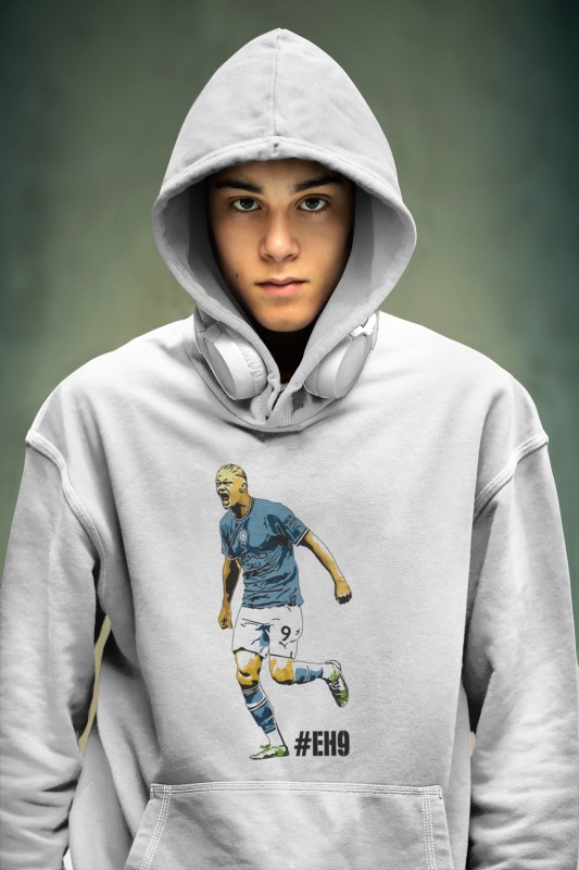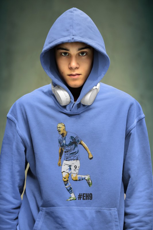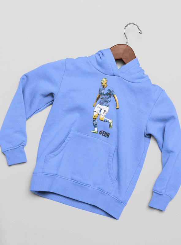 Mikina Haaland s motívom ostrostrelca z Manchestru City pre všetkých fanúšikov Nóra a Citizens. 100% bavlna. V bledomodrej a bielej farbe. Pánske a chlapčenské veľkosti. Kolekcia [PITČ].