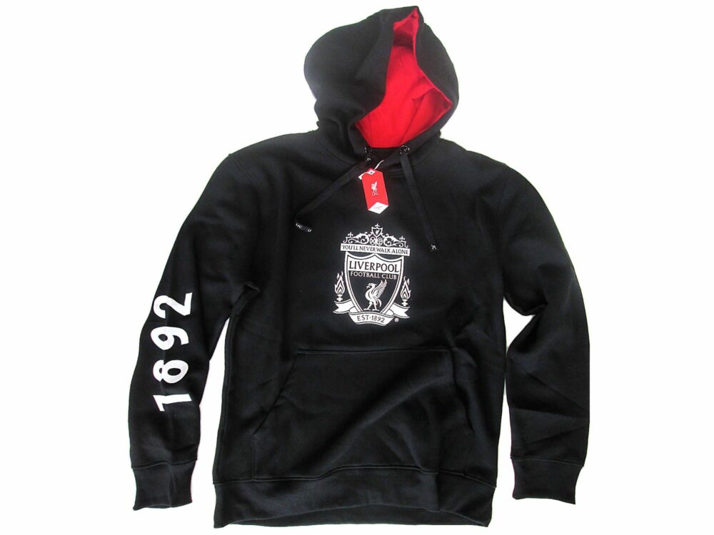 Mikina FC Liverpool s veľkým logom klubu a rokom založenia 1892 na rukáve. Pre všetkých fanúšikov The Reds. Čierna farba a biela grafika. Oficiálny produkt FC Liverpool.