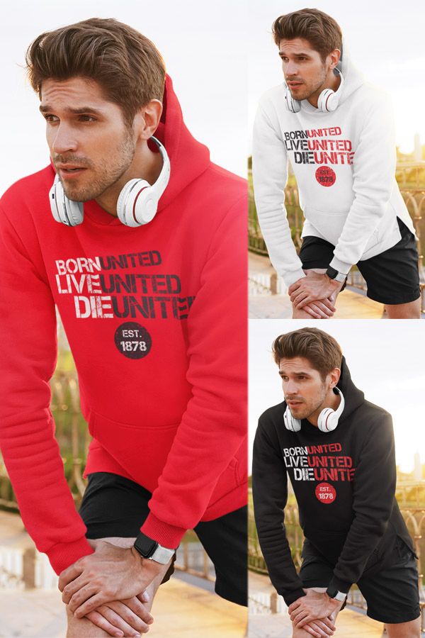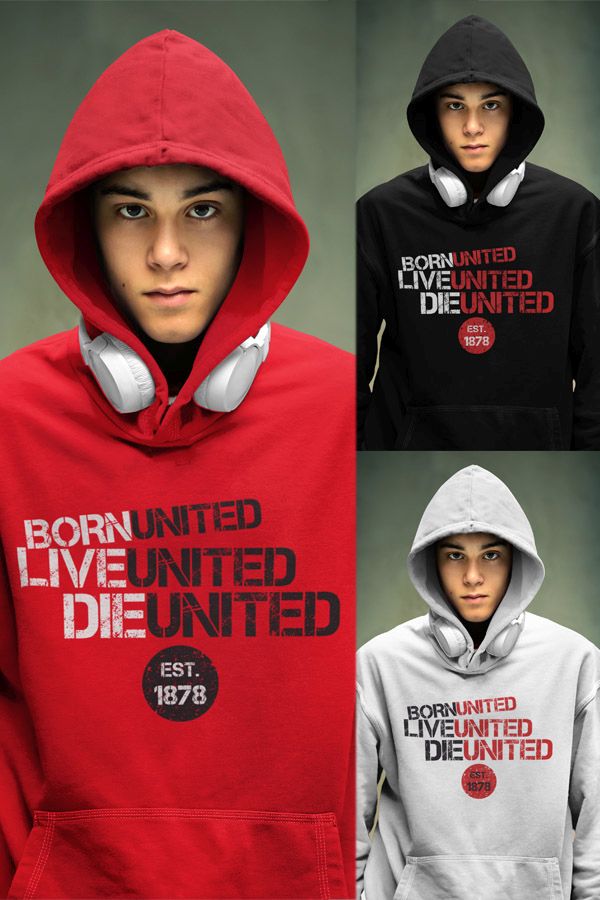 Mikina Manchester United s nápisom Born United, Live United, Die United. Pre všetkých fanúšikov klubu z Old Trafford. Červení diabli píšu novú históriu a sú stále jedným z najobľúbenejším klubov na Slovensku. Kolekcia [PITČ].