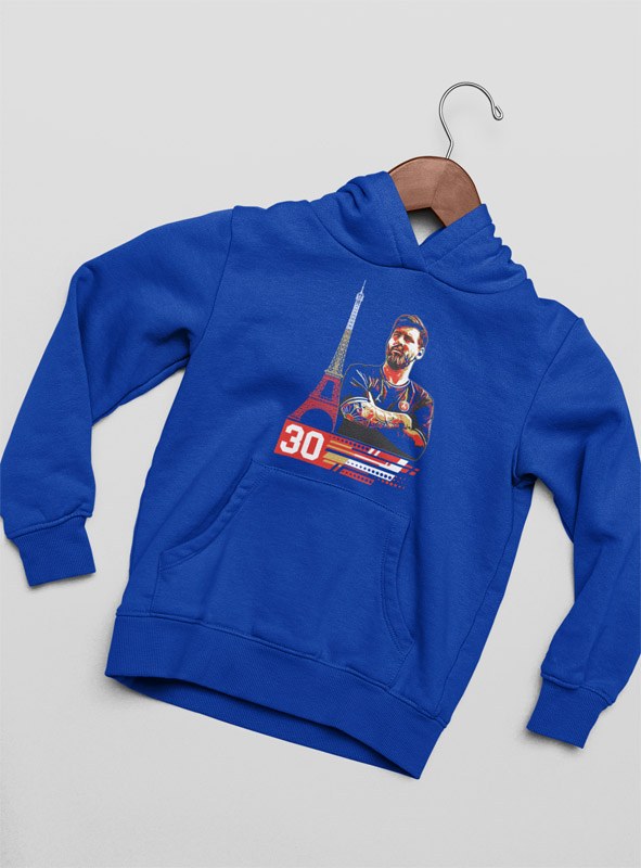 Mikina Messi s motívom jeho pdobenia v PSG. Pre všetkých fanúšikov argentínskej #10 a parížskej #30. Modrá, biela a čierna farba. Kolekcia [PITČ].