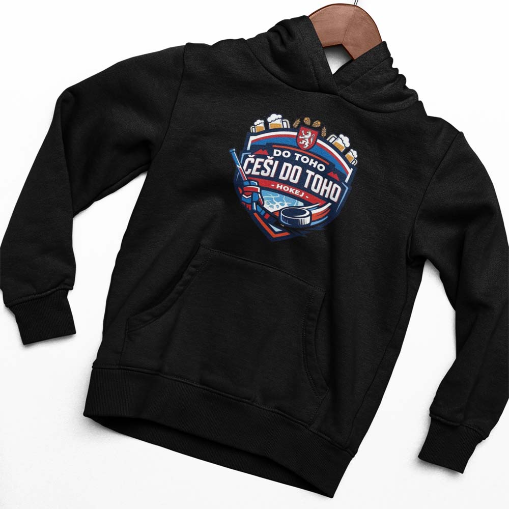 Štýlová hokejová mikina s kapucňou Češi Do Toho Erb pre všetkých fanúšikov českého hokeja. Pohodlný strih, kvalitná potlač a príjemný materiál z nej robia ideálny kúsok na zápasy, fandeniu aj bežné nosenie.