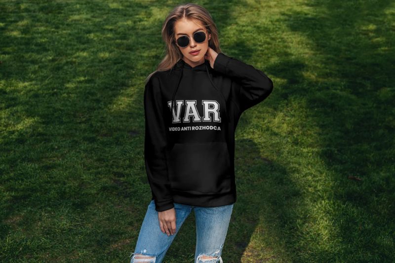 Mikina VAR pripomína, že od sezóny 2019/2020 tu máme VAR. Rozhodcovi a futbalu pomáha, či nepomáha? Záleží, či je tento (anti) rozhodca proti vášmu tímu alebo nie. Kolekcia [PITČ].