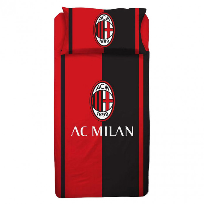 Bavlnené obliečky AC Miláno na posteľ a vankúš. Perina je vo veľkosti 140cm x 200cm. Obliečka na vankúš vo veľkosti 65x65cm. Červeno-čierna farba s logom AC Miláno a nápisom AC MILAN. 100% bavlna. Originálny produkt licencie AC Miláno.