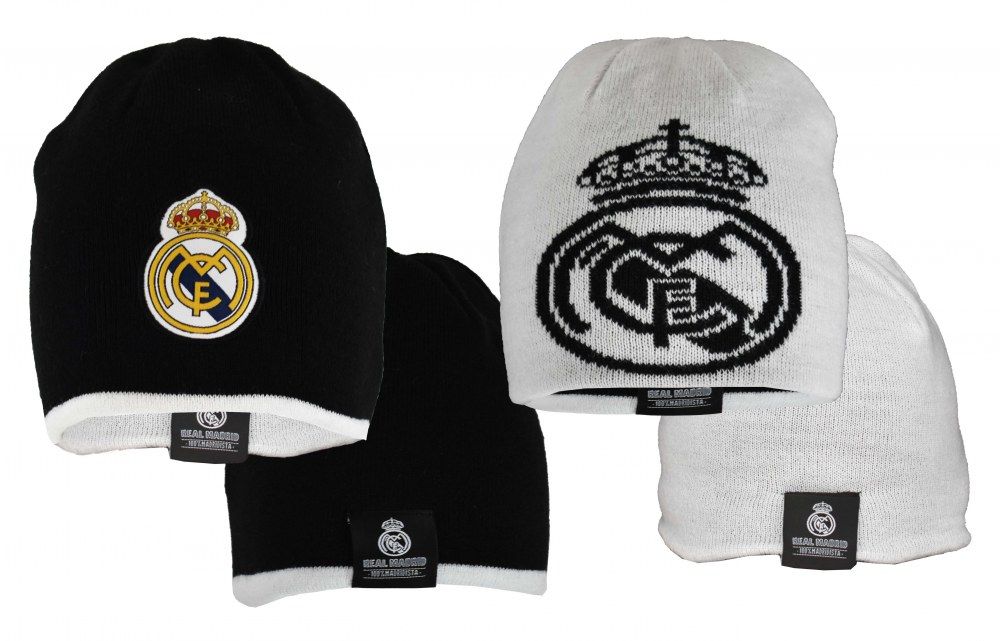 Obojstranná zimná čiapka Realu Madrid s logom klubu. Na jednej strane čierna a na druhej sivá. 100% autentický, oficiálny, licencovaný, originálny produkt Real Madrid.