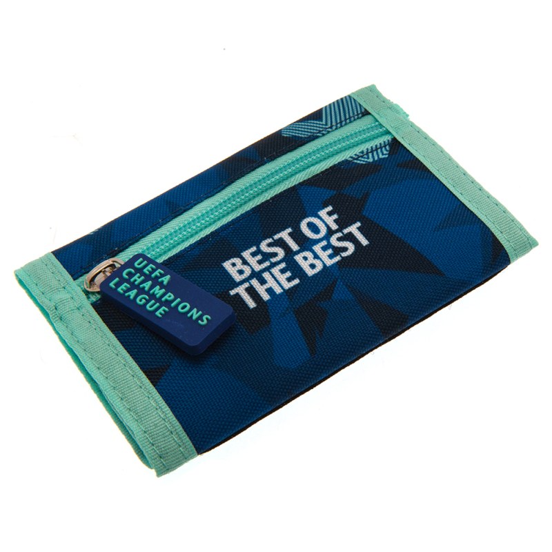 Peňaženka Champions league je skvelým darčekom pre fanúšikov najprestížnejšej klubovej súťaže. Je mimoriadne praktická a zmestia sa do nej bankovky, mince aj karty. Veľkosťou vhodná najmä pre deti školského veku. Na zadnej strane je zatváranie na klasický zips. Peňaženka je modrej farby s grafickými prvkami a lemovaním v tyrkysovej farbe. Oficiálny produkt UEFA Champions league.
