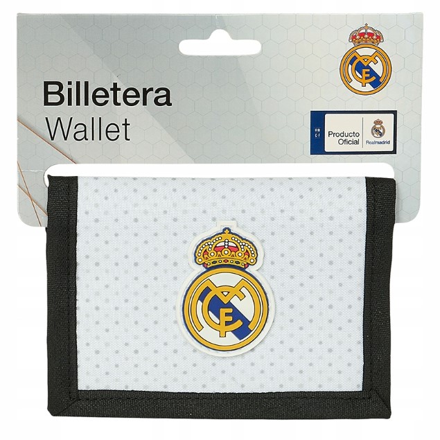 Peňaženka Real Madrid biela je skvelým darčekom pre fanúšikov Bieleho baletu. Je mimoriadne praktická a zmestia sa do nej bankovky, mince aj karty. Na zadnej strane je zatváranie na klasický zips. Peňaženka je v bielej farbe s logom klubu. Oficiálny produkt Real Madrid FC.
