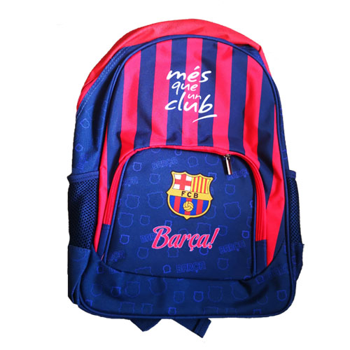 Školský ruksak Barcelona s výškou 45cm s názvom Barca a logom v dolnej časti a nápisom “més que un club” – “viac ako klub” v hornej časti. Ergonomicky tvarovaný chrbtový systém, polstrované ramenné popruhy, dve sieťované bočné vrecká, predné vrecko s organizérom, ucho na prenášanie batohu. Oficiálny produkt FC Barcelona.