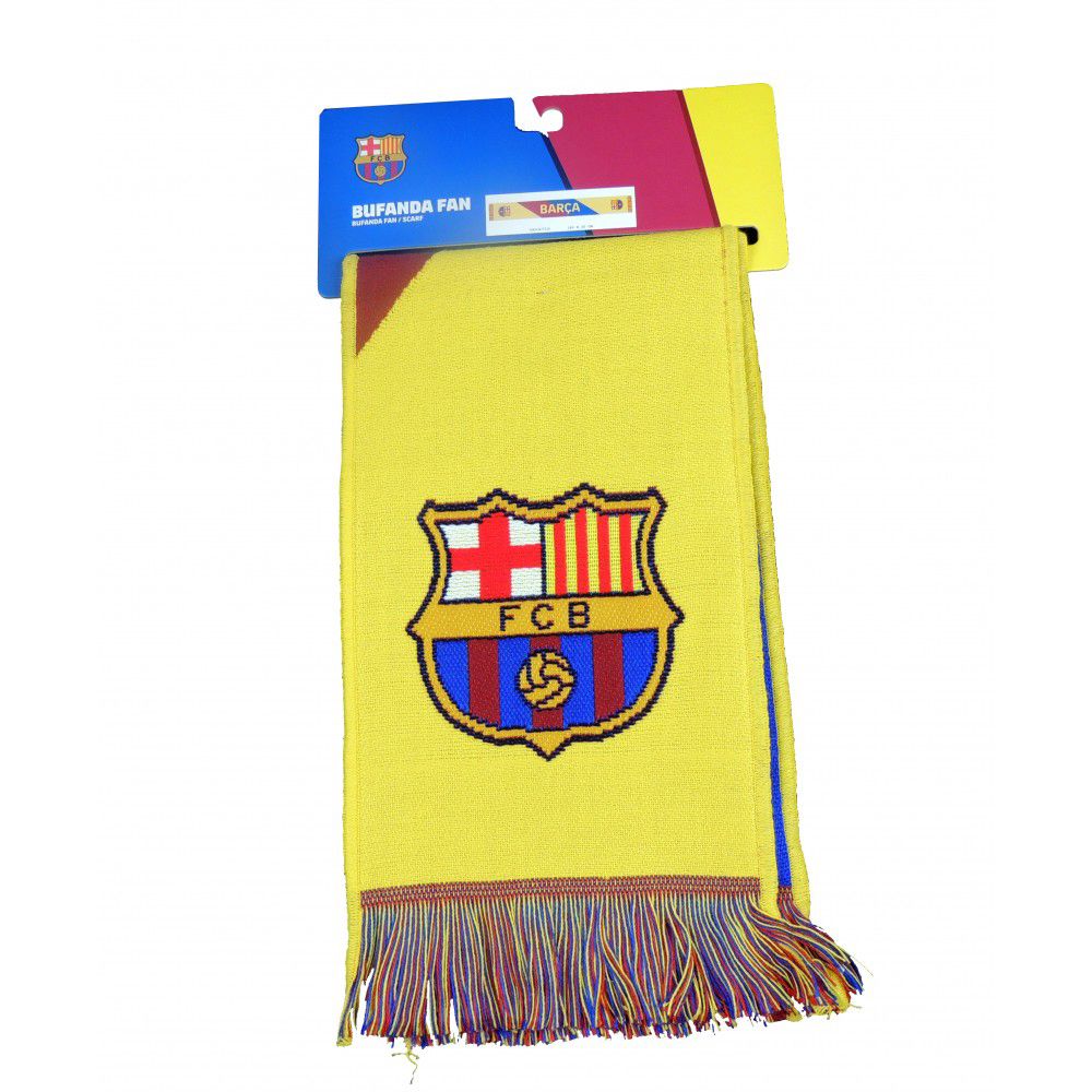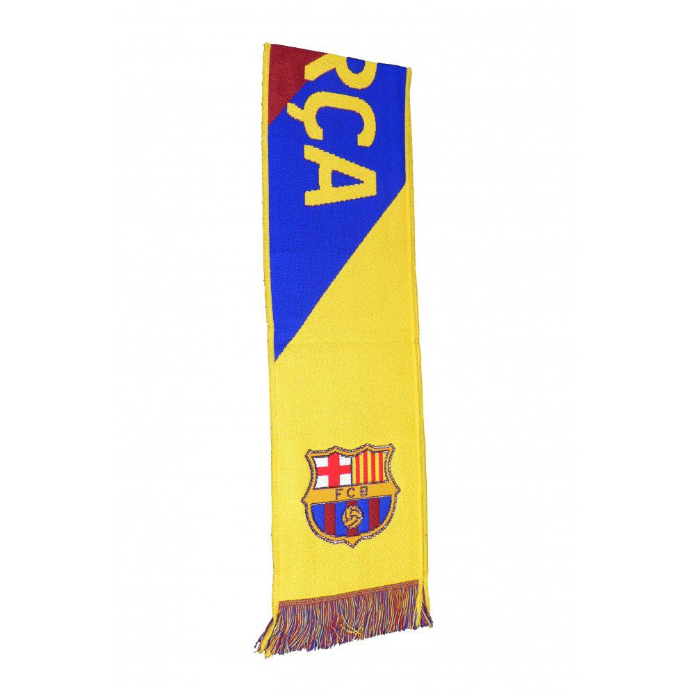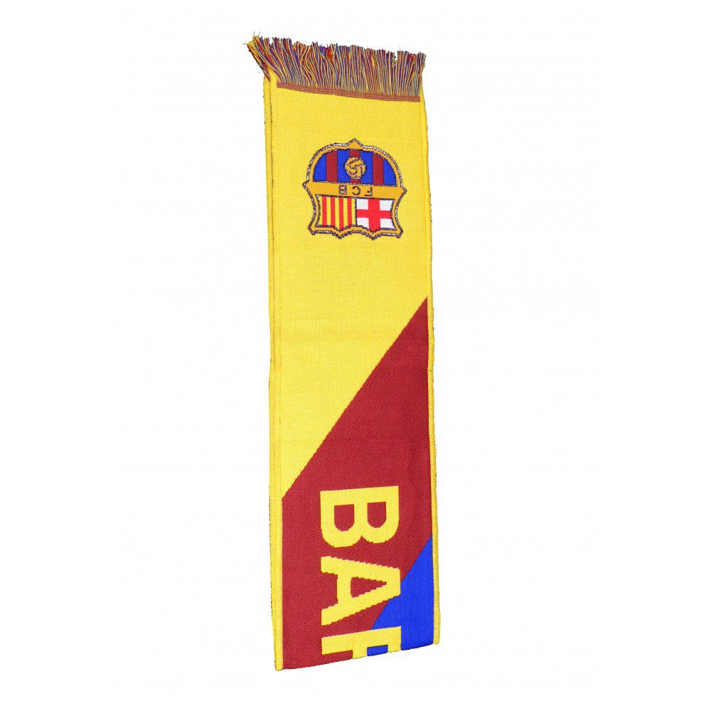 Šál Barcelona žltý s logom katalánskeho klubu a nápisom Barca. Ideálna výbava každého fanúšika FC Barcelona. Rozmer: 140cm x 20cm. Materiál: 100% akryl. Oficiálny produkt licencie FC Barcelona.