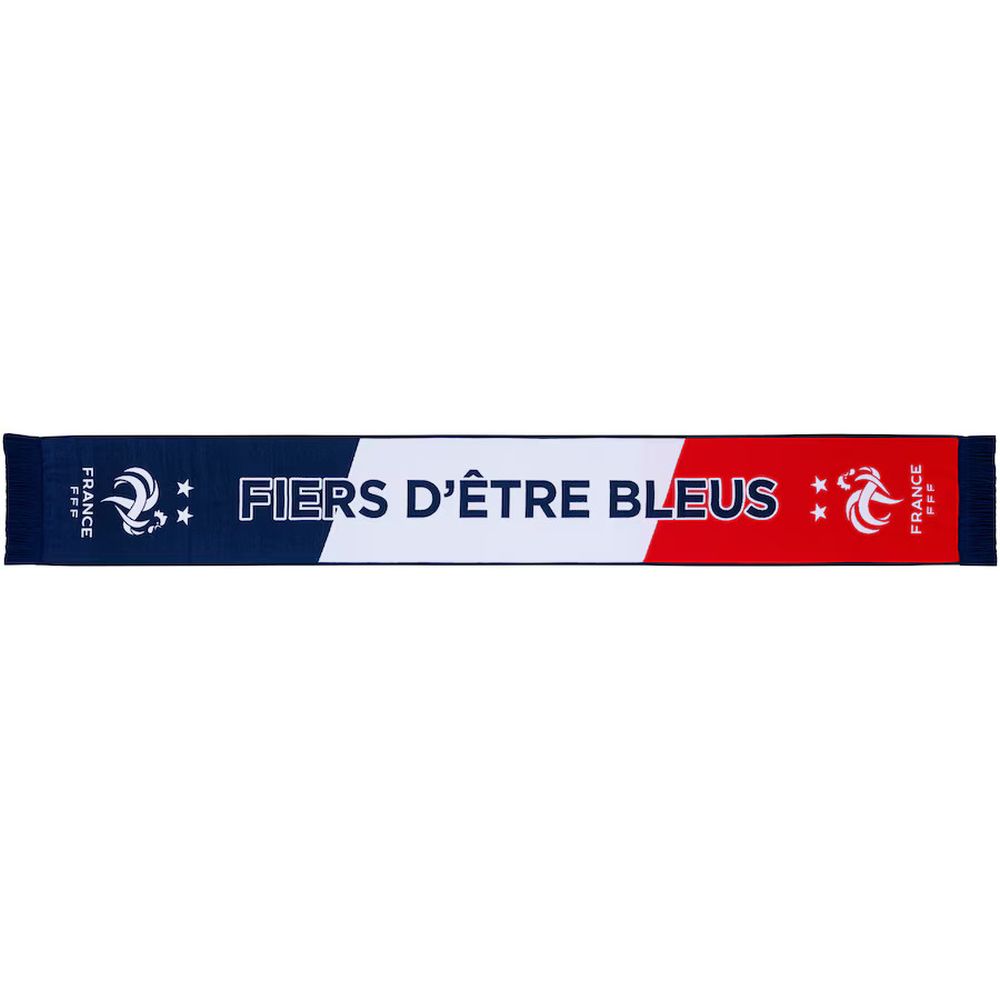 Šál Francúzsko. Modro-bielo-červená farba. S nápisom Fries d etre blues a logom France. Pre všetkých fanúšikov francúzskeho futbalového tímu Jednotná Veľkosť. Oficiálny produkt FFF.