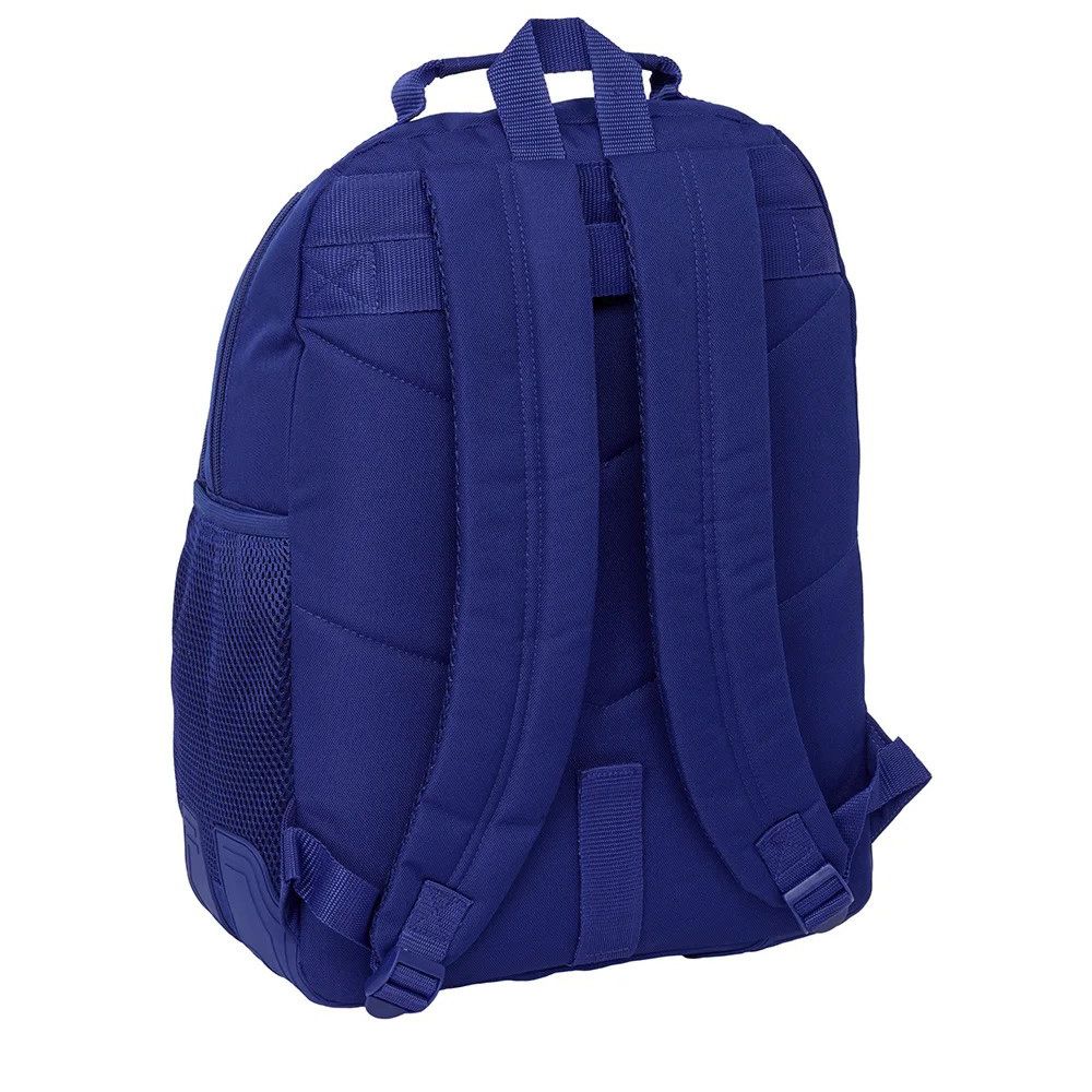 Školský batoh FC Barcelona má dve hlavné priehradky a priestranné predné vrecko s vnútorným organizérom vám pomôžu udržať si poriadok a rýchlo nájsť, čo potrebujete. Zapínanie na dvojité zipsy s ozdobnými rúčkami. Mäkká rukoväť a možnosť pripevnenia na kočík. Na ľavej strane je bočné vrecko na fľašu a na spodných rohoch gumové podložky na ochranu proti oderu .Chrbát je ergonomicky tvarovaný a vystužený. Popruhy nastaviteľné , polstrované. Ruksak je vyrobený z vysoko kvalitných materiálov, ktoré sú ľahké, odolné a ľahko sa čistia.Na prednej priehradke pripevnená kľúčenka s nápisom Barca. Klubové farby. Pogumované logo a nápis Barca. Rozmery sú 42 x 32 x 15 cm a odporúčaný vek: 8 – 12 rokov. Objem 20 litrov a hmotnosť 600 gramov. Oficiálný produkt FC Barcelona.
