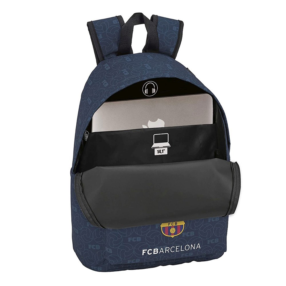 Školský batoh FC Barcelona modrý je ideálny do školy a na výlety. Ľahký, vyrobený z nepremokavého polyesteru. Na prednej strane s vreckom a tromi vnútornými vreckami s polstrovanou ochranou pre notebook do 14 palcov, tablet 10 palcov a slúchadlá. Tvarovaný chrbát a držadlo na nosenie batohu. Veľmi praktické. Stačí opláchnuť vodou s jemným čistiacim prostriedkom. Vyrobené v licencii, a preto je starostlivo a spoľahlivo ušité z najkvalitnejších materiálov.