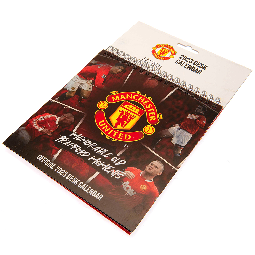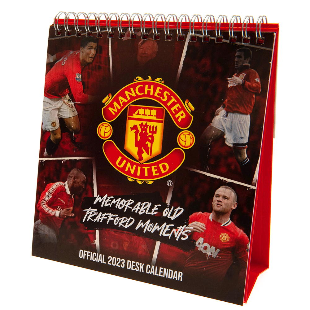 Stolový kalendár Manchester United na rok 2023 pre všetkých fanúšikov The Red Devils. Jedna titulná fotka a 12 ďalších. Najlepšie klubové momenty z Old Trafford. Formát 17cm x 16 cm. Oficiálny produkt Manchestru United.