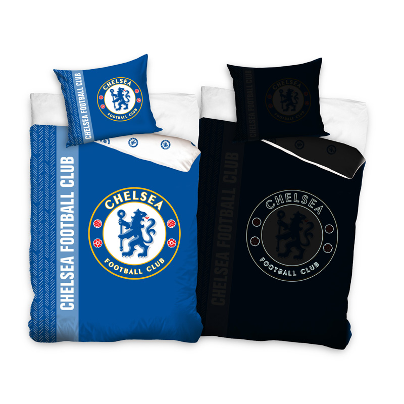 Svietiace bavlnené obliečky FC Chelsea na posteľ a vankúš. Na svetle v modrej klubovej farbe a v tme jemne svietia. Obliečka na perinu je vo veľkosti 140cm x 200cm. Obliečka na vankúš vo veľkosti 70x80cm. 100% bavlna. Originálny produkt licencie Chelsea FC.