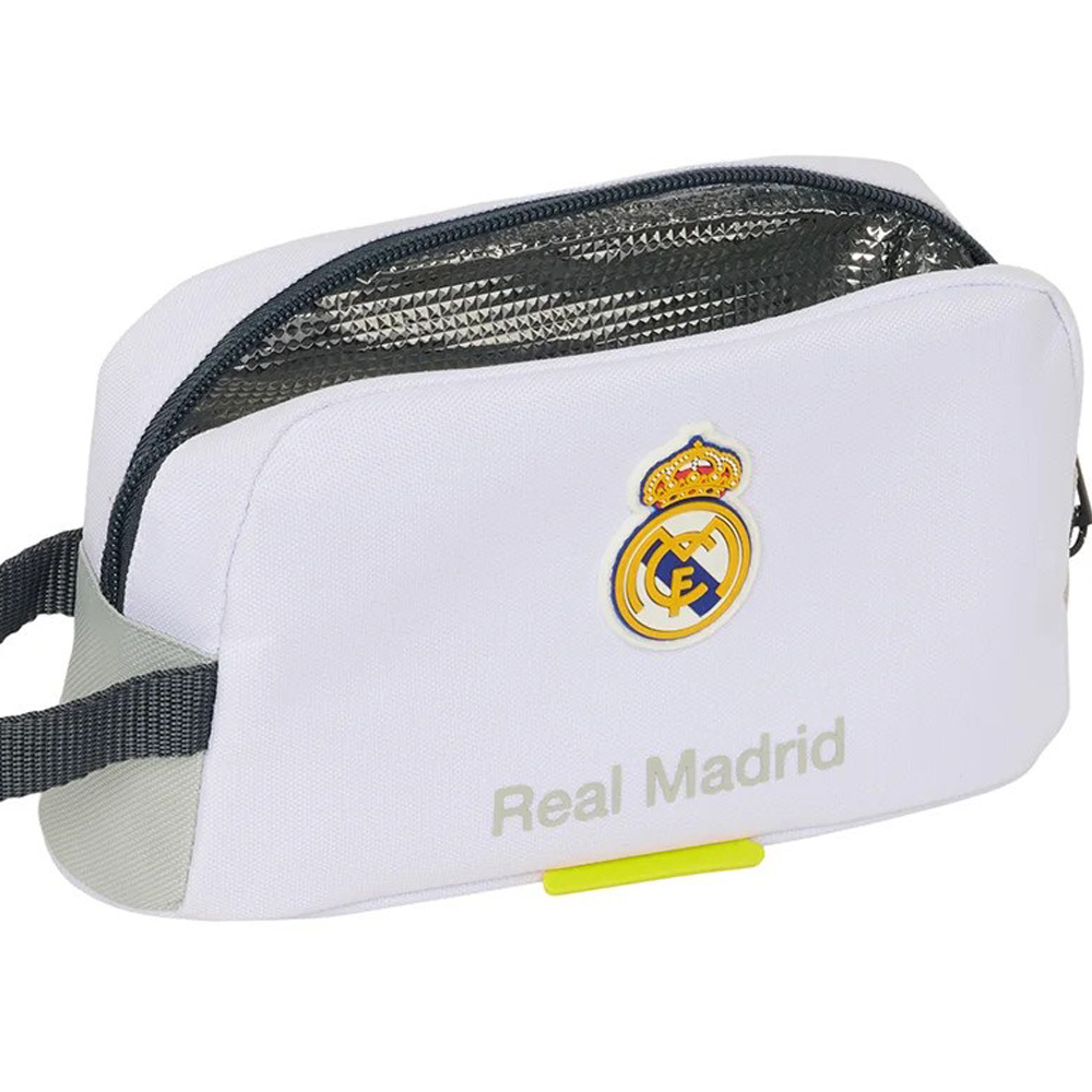 Termotaška Real Madrid 25-26 udrží vaše jedlo v požadovanej teplote. Je ideálna do školy, alebo na výlety. Rozmery: 21,5cm x 6,5cm x 12cm. Kapacita: 1,7 litra. Jedna hlavná priehradka s vnútornou hliníkovou výplňou pre udržanie tepla alebo chladu. Zapínanie na zips s ozdobnou rúčkou. Na bočnej strane je rukoväť pre lepšiu manipuláciu. Vyrobené v licencii, a preto je starostlivo a spoľahlivo ušitá z najkvalitnejších materiálov. Klubové farby. Logo klubu a nápis Real Madrid. Oficiálny produkt Realu Madrid.