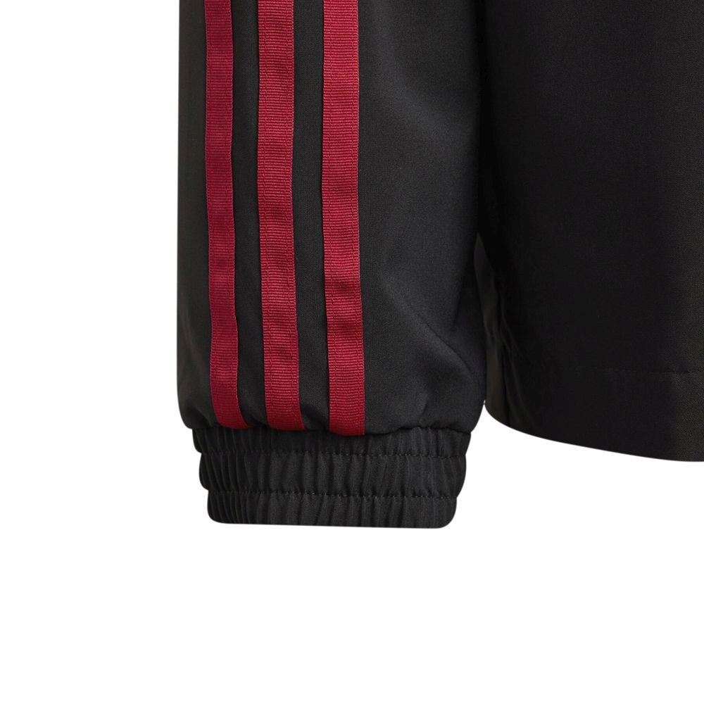 Tréningová bunda Adidas World Cup 2022 oslavuje vrcholové podujatie MS 2022 v Katare. Vyznačuje sa štíhlym strihom, ktorý objíme telo pre pohodlný pocit. Mäkká podšívka zo sieťoviny sa spája s AEROREADY, aby vás udržala v suchu, keď budete hrať zápas s priateľmi. Znak Majstrovstiev sveta vo futbale 2022™ ukazuje nadšenie pre krásnu hru. Tento produkt je vyrobený zo 100 % recyklovaných materiálov. Bunda je čiernej farby s bordovými pásikmi na tukávoch, bielymi logami Adidas a Qatar 2022. Mikina je na zips s dvomi bočnými vreckami.