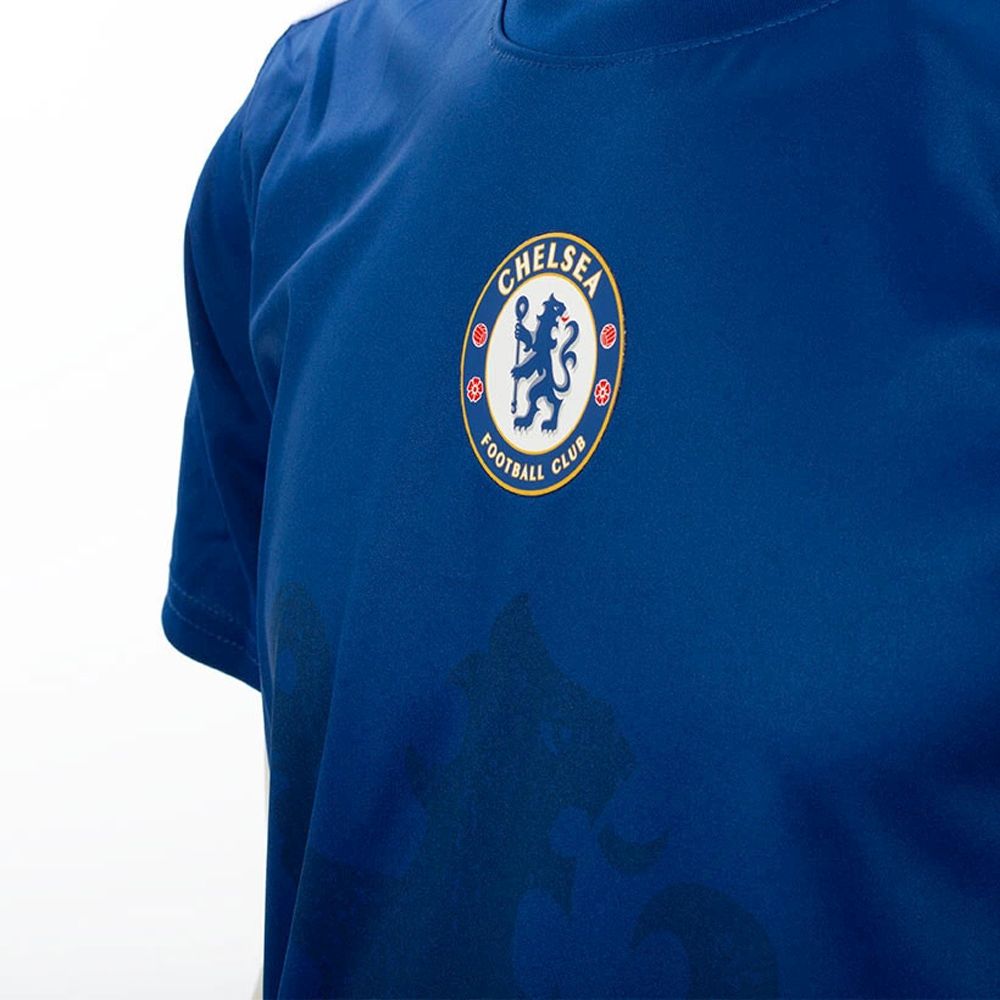 Tréningové futbalové tričko pre všetkých fanúšikov Chelsea s logom klubu. V modrej farbe s potlačou leva na prednej strane. 100% polyester. Možnosť potlače vlastného mena a čísla. Oficiálny licencovaný produkt FC Chelsea.