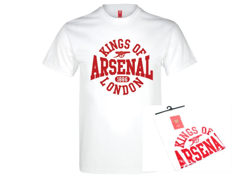 Biele futbalové tričko pre všetkých fanúšikov Arsenalu. S nápisom Kings of London, znakom a dátumom vzniku klubu. Oficiálny licencovaný produkt Arsenal FC. 100% bavlna.