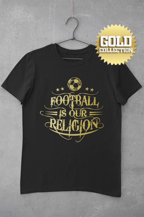Futbalové tričko Football Is Our Religion pre všetkých, ktorí milujú tento nádherný šport. Teraz aj v špeciálnej a exkluzívnej ZLATEJ edícii. 100% bavlna. Rôzne veľkosti, čierna farba. Kolekcia [PITČ].